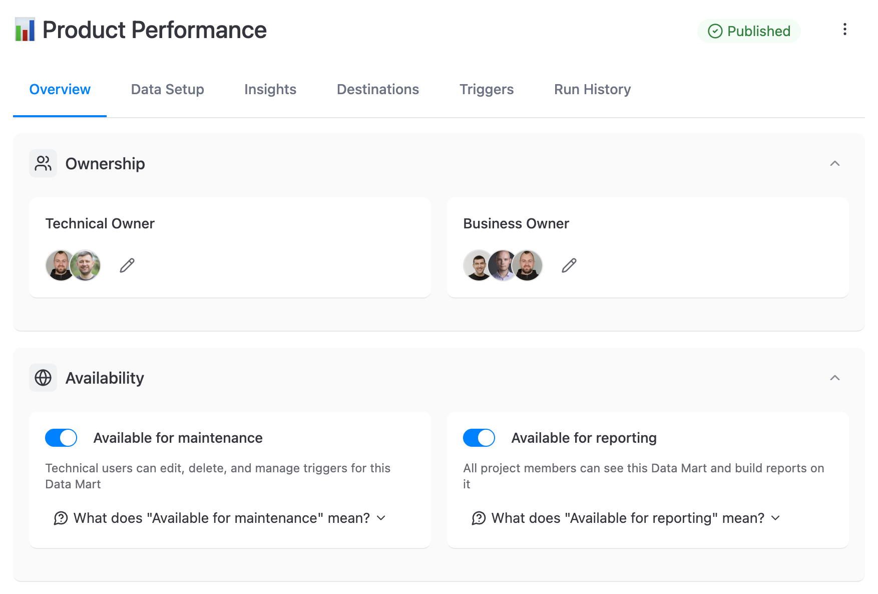 Data stays in your warehouse. Context-based access management makes it obvious who owns what.
